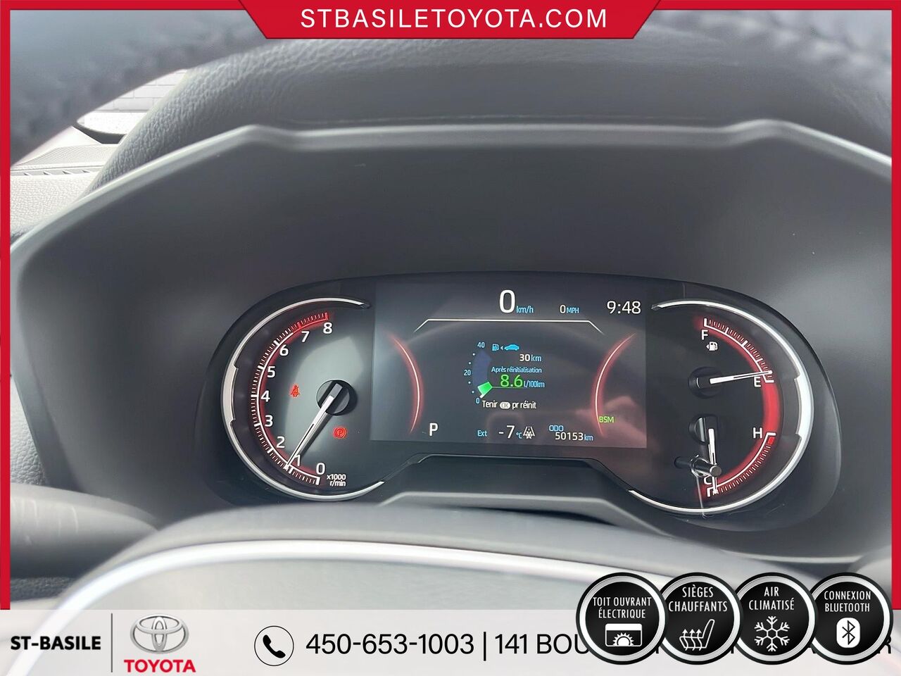 This 2023 Toyota RAV4 is available at St-Basile Toyota in Saint-Basile-le-Grand. Contact our sales team or come meet us at 141 Blvd. Sir-Wilfrid-Laurier for more details, for a test drive, or to make a reservation.