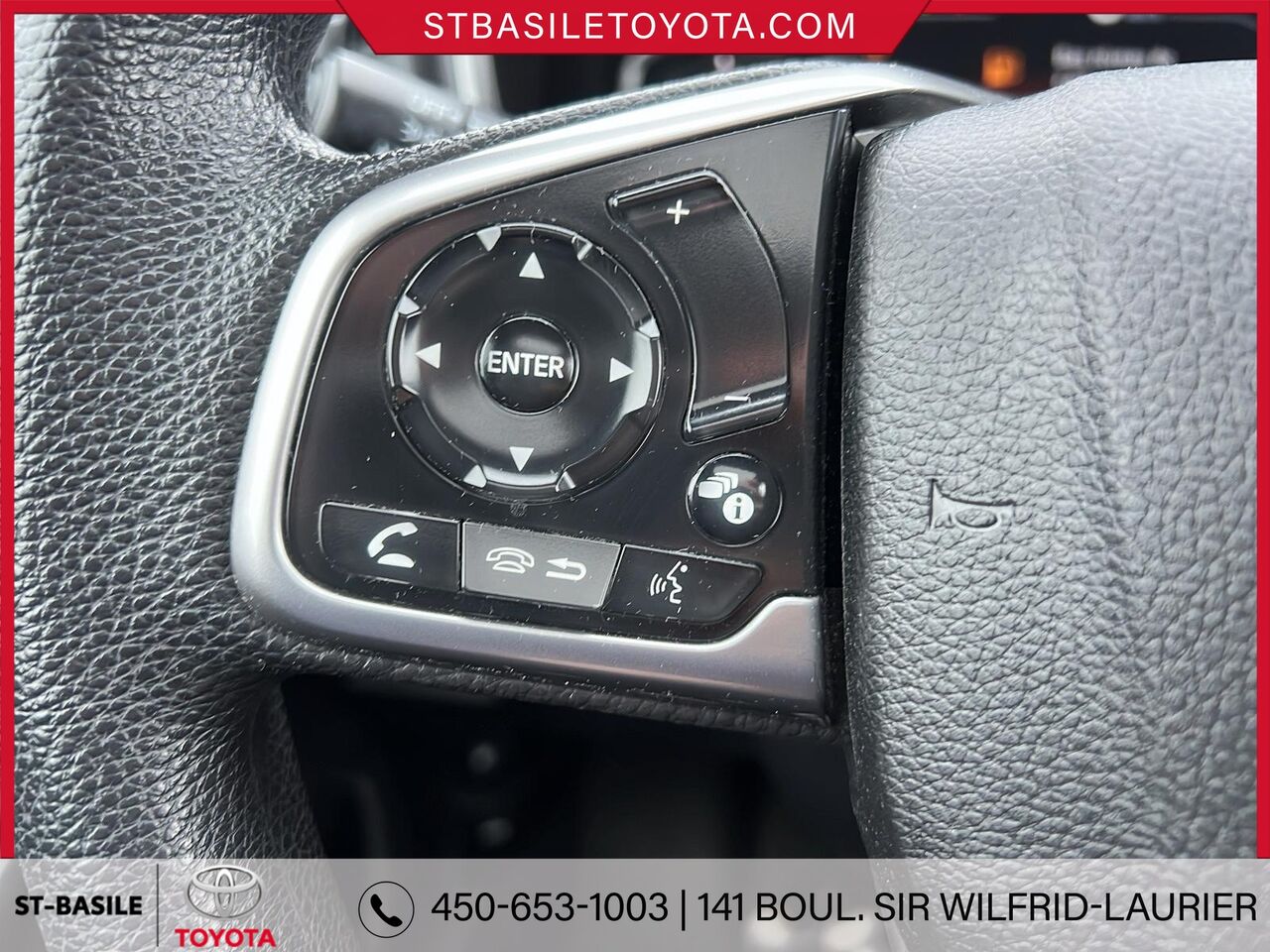Ce HONDA CR-V 2019 est disponible chez St-Basile Toyota à Saint-Basile-le-Grand. Contactez notre équipe des ventes ou venez nous visiter au 141 Blvd. Sir-Wilfrid-Laurier pour obtenir plus d'informations, en faire l'essai ou le réserver.